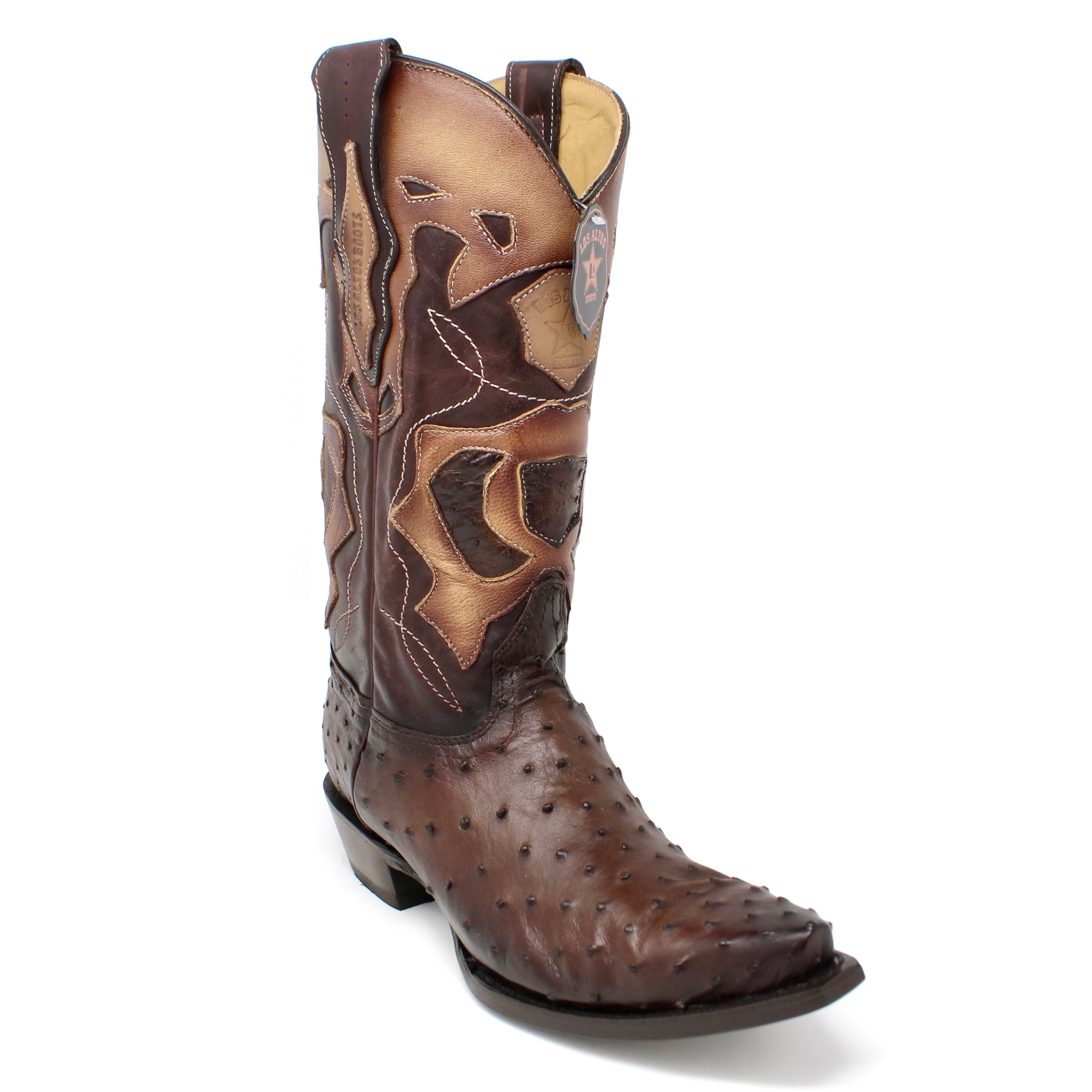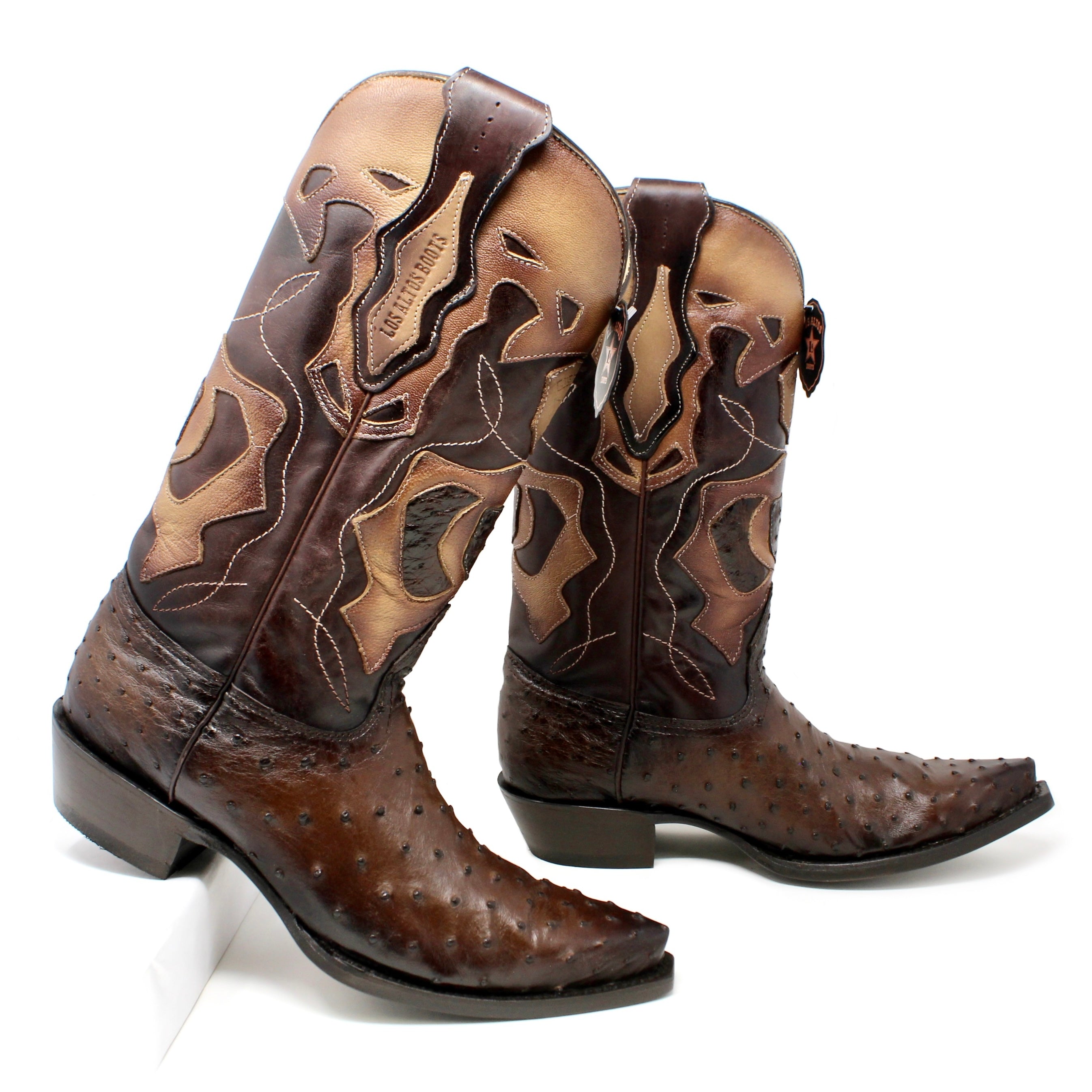 Step into premium Western craftsmanship with the Los Altos Ostrich Snip Toe Cowboy Boot in faded brown. Handcrafted with full quill ostrich leather, this boot delivers unmatched softness, flexibility, and durability. The shaft features a multi-tone, hand-cut overlay design that gives each pair a bold, one-of-a-kind look. Built with a sleek snip toe, leather outsole, and Goodyear welt construction, these boots combine luxury materials with classic cowboy styling—perfect for rodeo nights, special events, or everyday Western wear. Comfortable, striking, and made to last, this is a true standout boot in any collection.