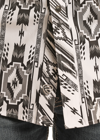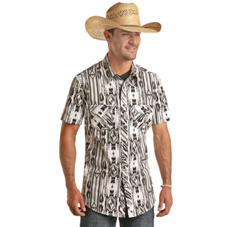 Rock & Roll Denim Tek Western Aztec Print Short Sleeve Snap Shirt