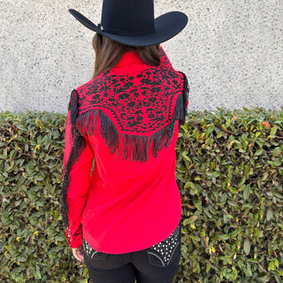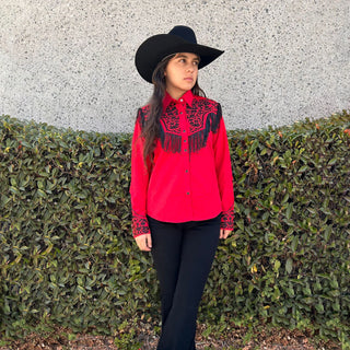American West Cowgirl Embroidered Tassel Shirt - Red