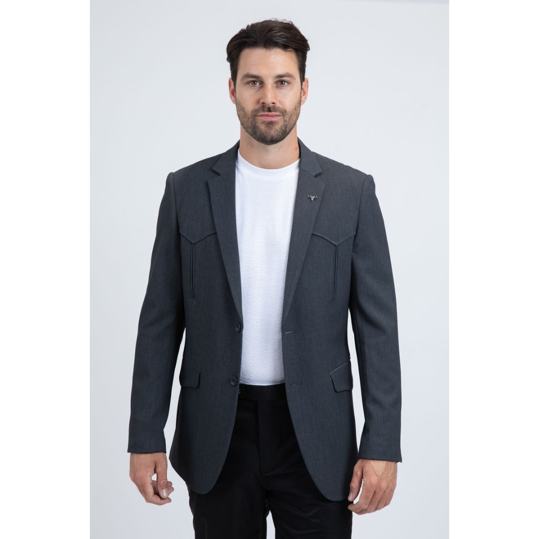 - Description: Step into rugged sophistication with our Men's Western Sportscoat. Boasting a tailored silhouette with distinctive Western-inspired details, including vertical arrow-style chest and arrow-style back vents, this sportscoat exudes timeless allure. Complete with faux hand pockets, it offers both style and durability for the modern man.