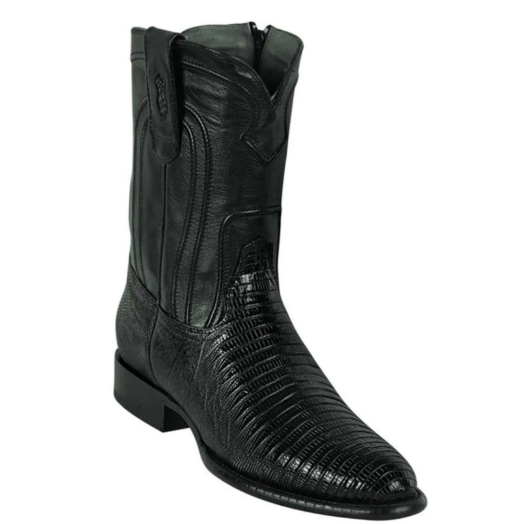 Luxury meets Western tradition. The Los Altos Men’s Genuine Lizard (Teju) Roper Boot in Black features authentic lizard skin, premium leather, and expert craftsmanship for a bold, elevated cowboy look.