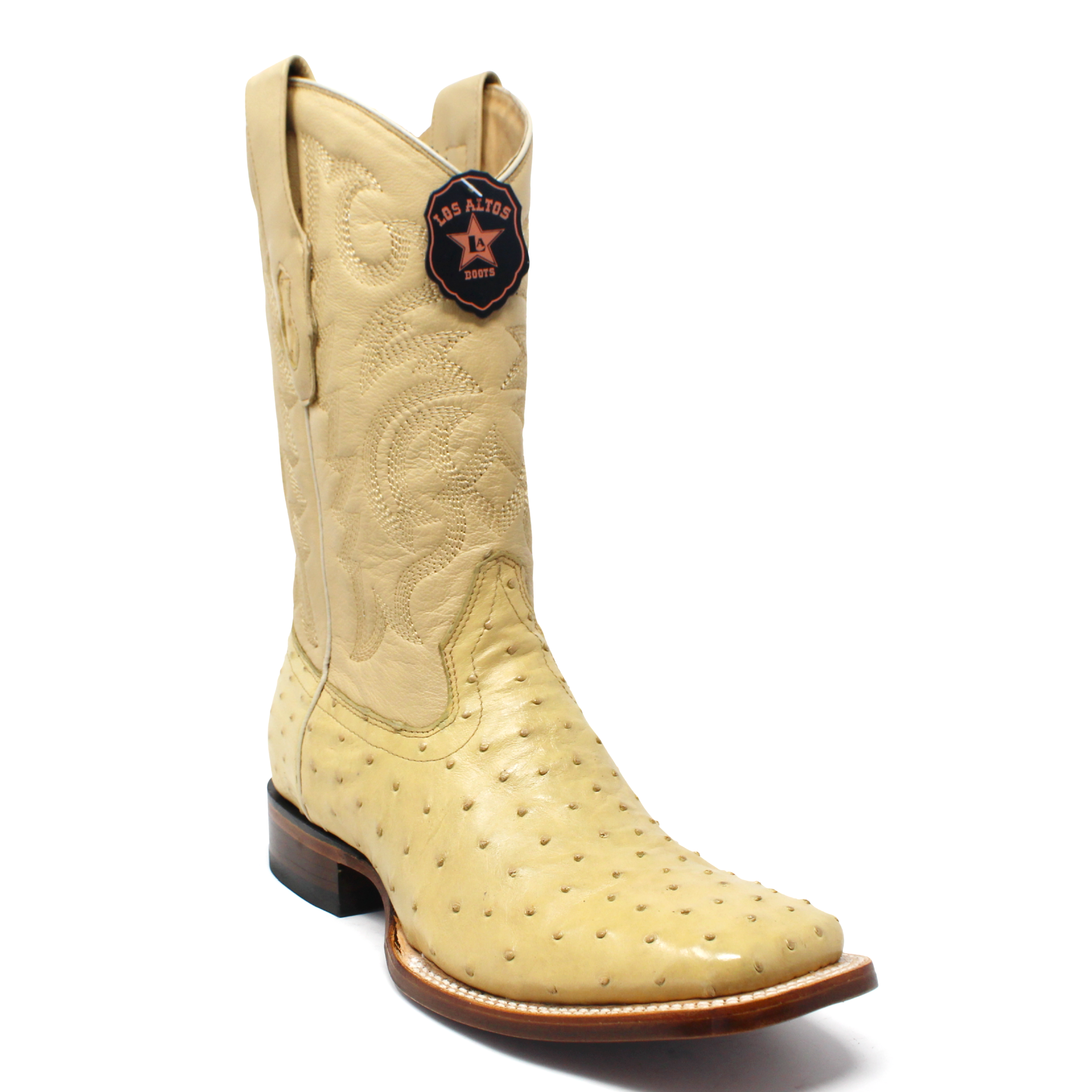 Step up your Western style with the Los Altos Men’s Full Quill Ostrich Wide Square Toe Boots. Handcrafted from genuine full quill ostrich leather, these boots blend superior craftsmanship with luxury and durability. The rich light brown finish highlights the natural texture of the ostrich leather, while the detailed stitching on the leather shaft adds a classic cowboy touch. Built with a Goodyear welt construction for long-lasting wear, these boots deliver exceptional comfort, support, and timeless style for the modern cowboy.