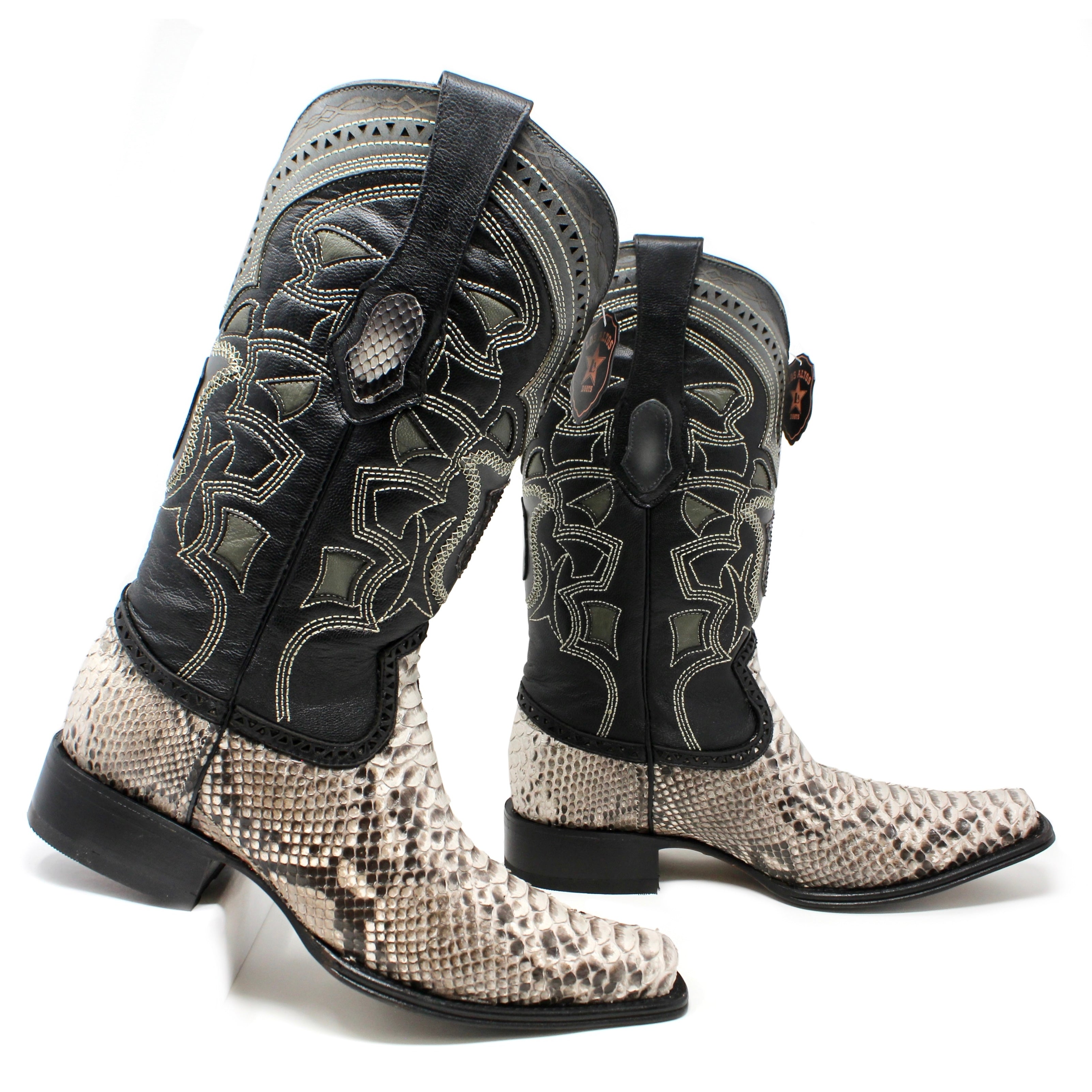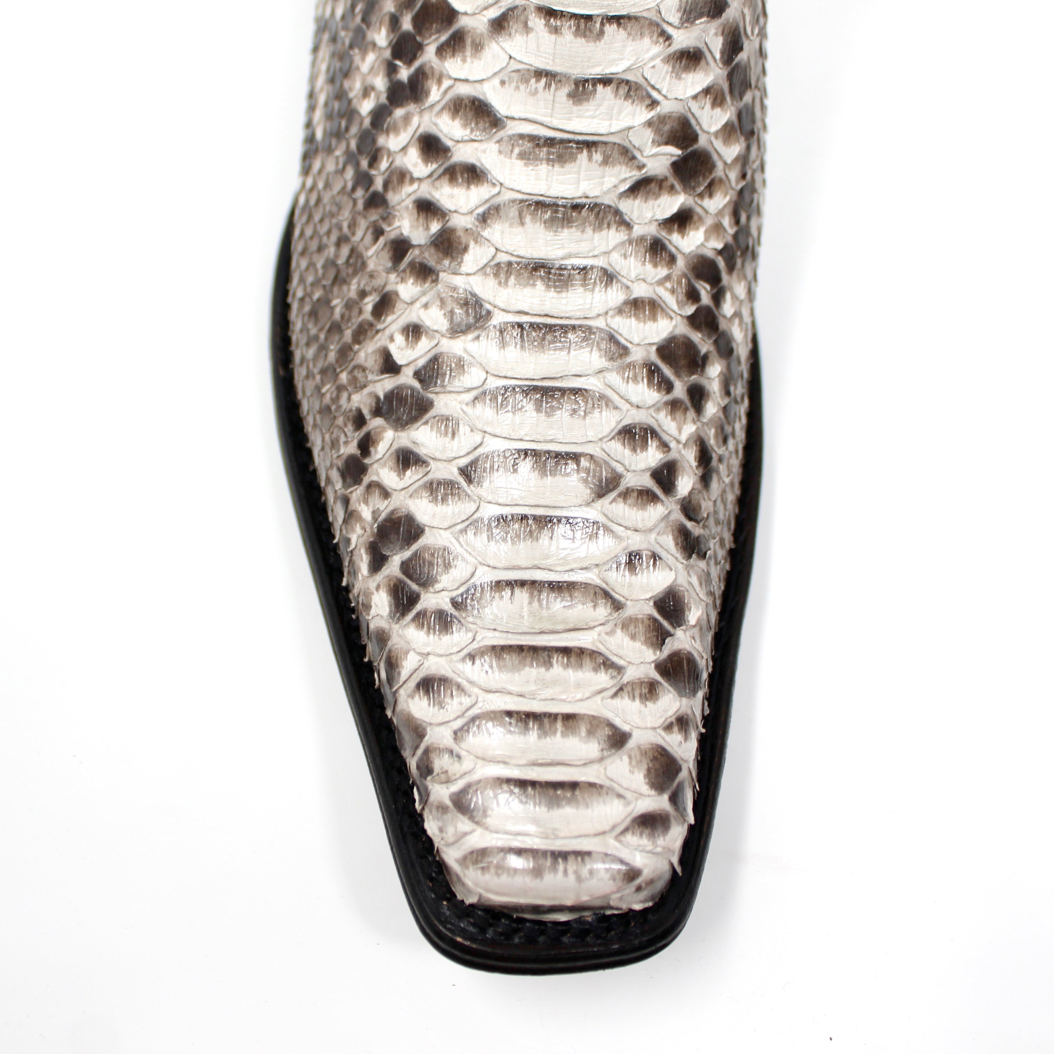 Step into bold, exotic style with these Los Altos genuine python cowboy boots. Crafted with authentic python skin and a detailed leather shaft, these boots deliver durability, comfort, and unmistakable Western sophistication. The European square toe provides a refined profile, while the leather sole and Goodyear welt construction ensure long-lasting wear. Perfect for rodeos, events, nights out, or elevating any Western wardrobe.