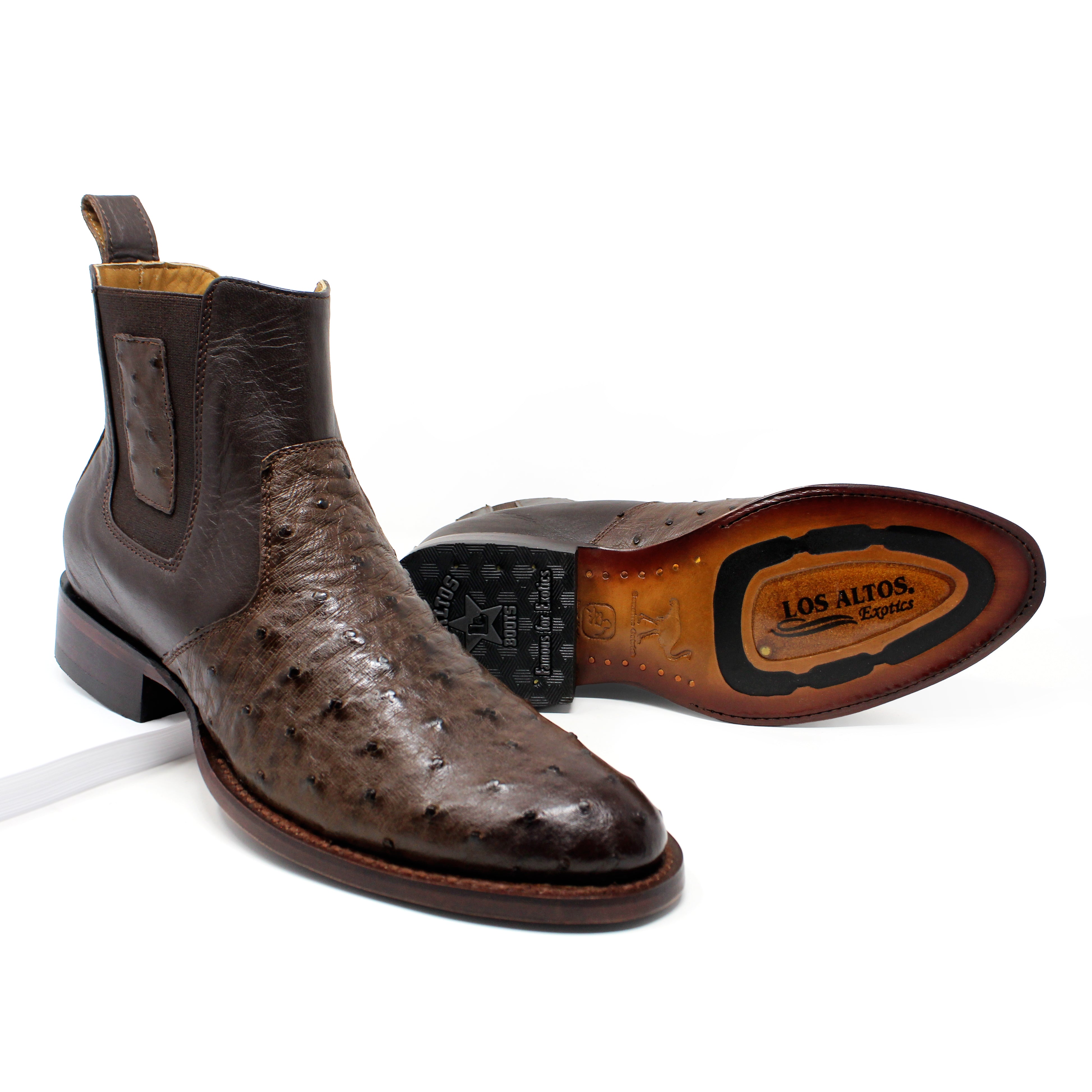 Step into premium Western luxury with the Los Altos Full Quill Ostrich Botín in Faded Brown. Handcrafted in Mexico with genuine full-quill ostrich leather, this ankle-height boot delivers unmatched texture, softness, and durability. Its slip-on Chelsea design features elastic side panels for a comfortable, flexible fit, while the leather sole and cushioned interior make it ideal for long wear. Whether you’re dressing up for a night out, heading to a rodeo, or upgrading your everyday Western look, this exotic Los Altos botín brings style and craftsmanship that stands out.