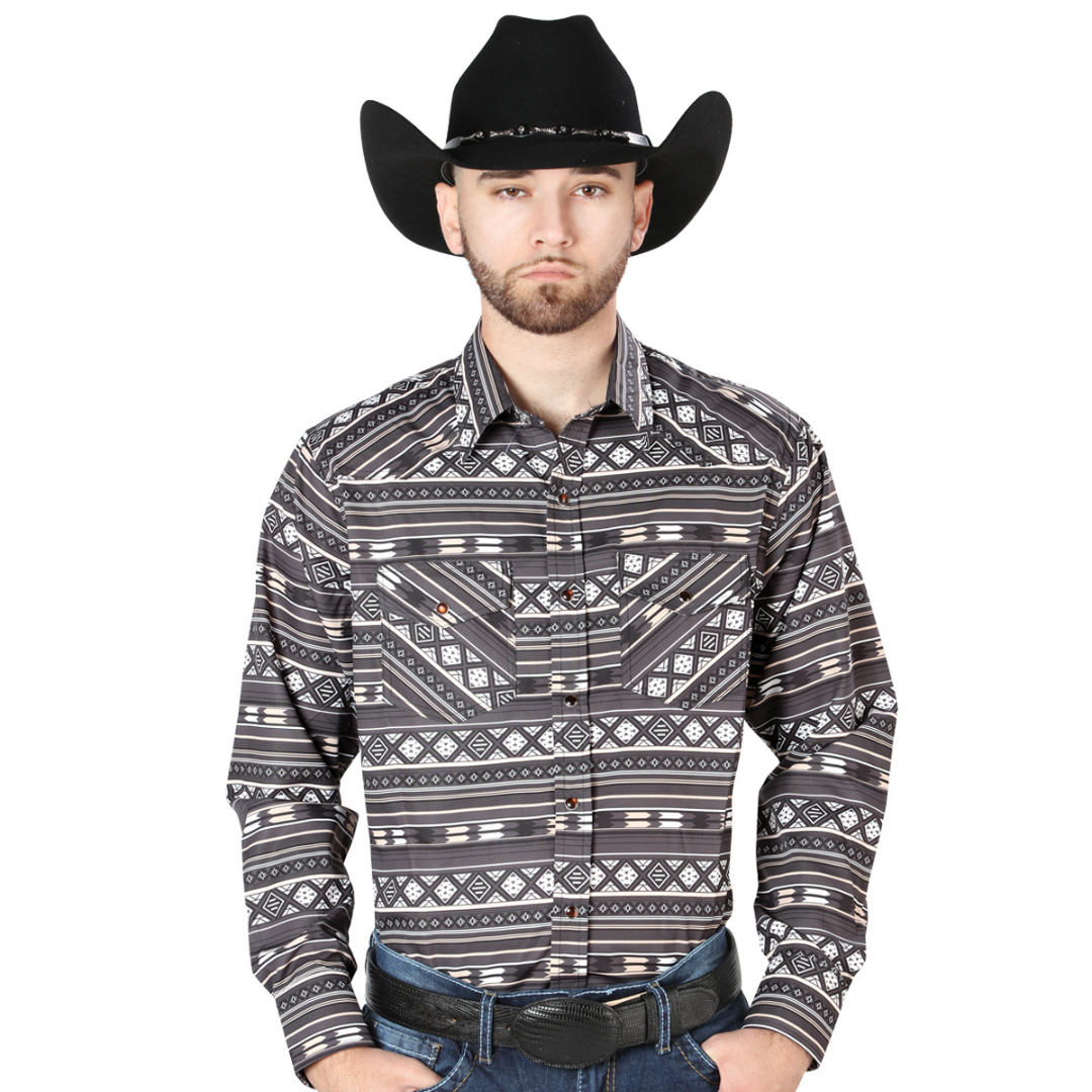 Add bold Western attitude to your wardrobe with this El General Brown Geometric Print Long Sleeve Shirt. Designed with an all-over Geometric pattern, this shirt blends rustic cowboy style with a clean, modern look. Perfect for rodeos, concerts, nights out, or everyday Western fashion, it offers comfort, durability, and a sharp silhouette. Pair it with your favorite boots, denim, and hat for a true MexWest cowboy fit that stands out.