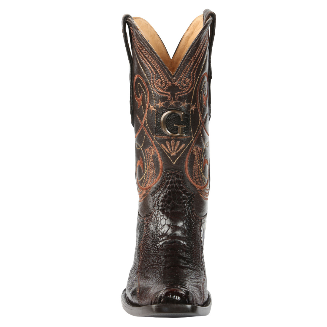 The El General Men's Exotic Ostrich Leg Cowboy Boots are a bold expression of western tradition and refined craftsmanship. Made from genuine ostrich leg leather, these boots offer a unique texture, remarkable durability, and a rugged yet elegant appearance. Built on the classic Horma 37 Levi, they deliver a secure and comfortable fit tailored for long-lasting wear. The genuine leather sole (suela de cuero) adds durability and a traditional cowboy finish. Proudly made in Mexico, these boots showcase the rich heritage and expert bootmaking skills that define El General—perfect for the modern cowboy who demands authenticity, quality, and standout style.