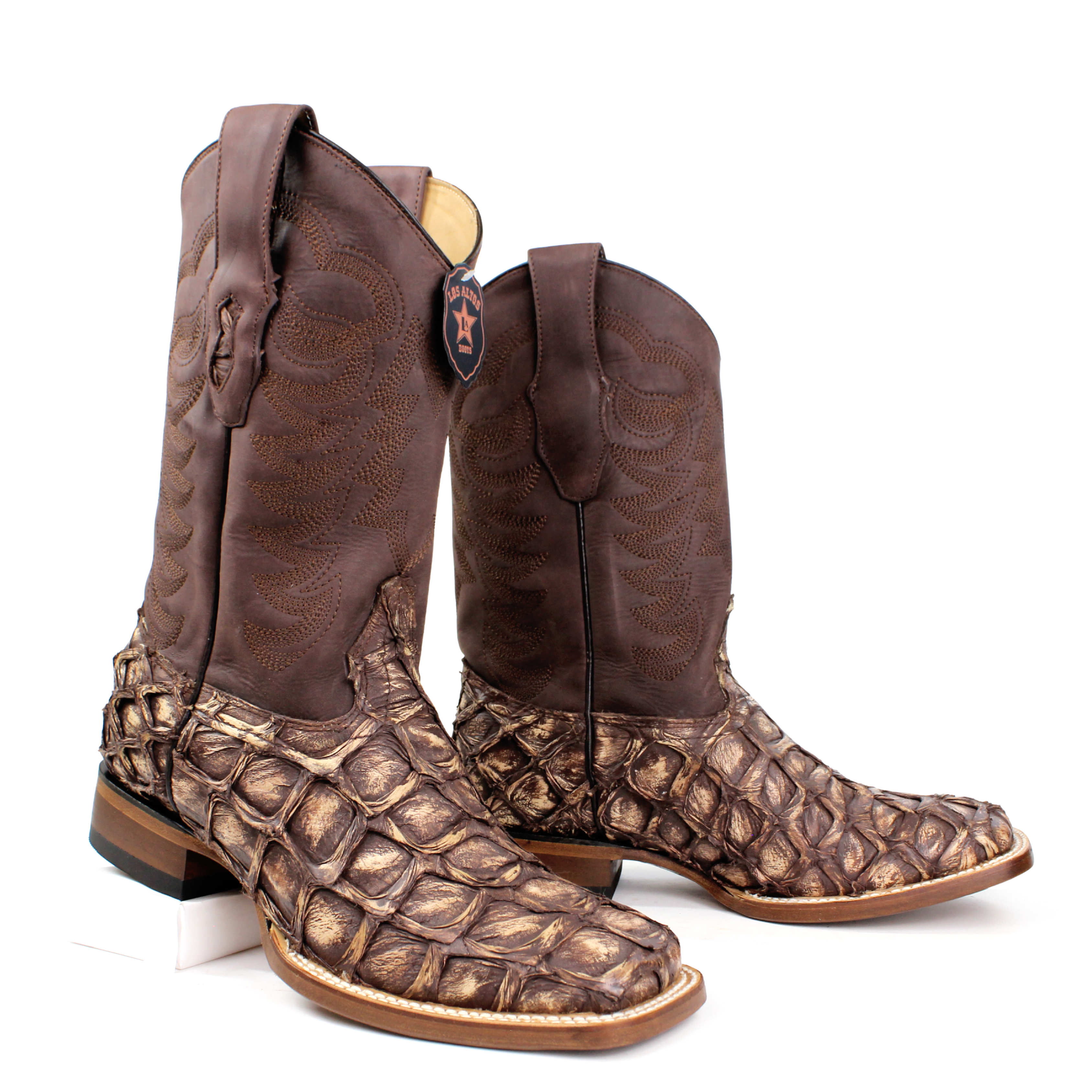 Los Altos Pirarucu Square Toe Cowboy Boot - Rustic Brown