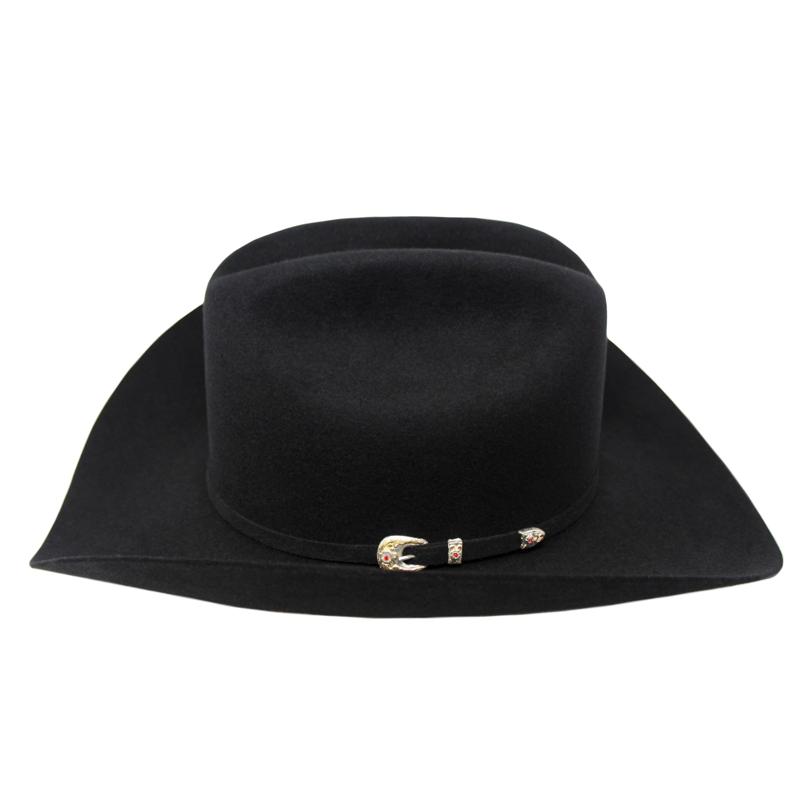 - Matching hatband with 3 piece buckle set with ruby color stones
