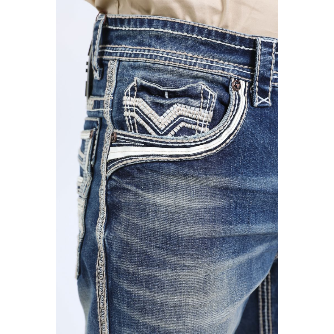 How to Wear: Pair these Platini Holt Slim Boot-Cut Jeans with a classic western shirt and cowboy boots for an authentic cowboy look. Alternatively, style them with a graphic tee and sneakers for a casual yet rugged vibe. Whether you're riding the range or heading out for a night on the town, these versatile jeans will keep you looking and feeling your best.