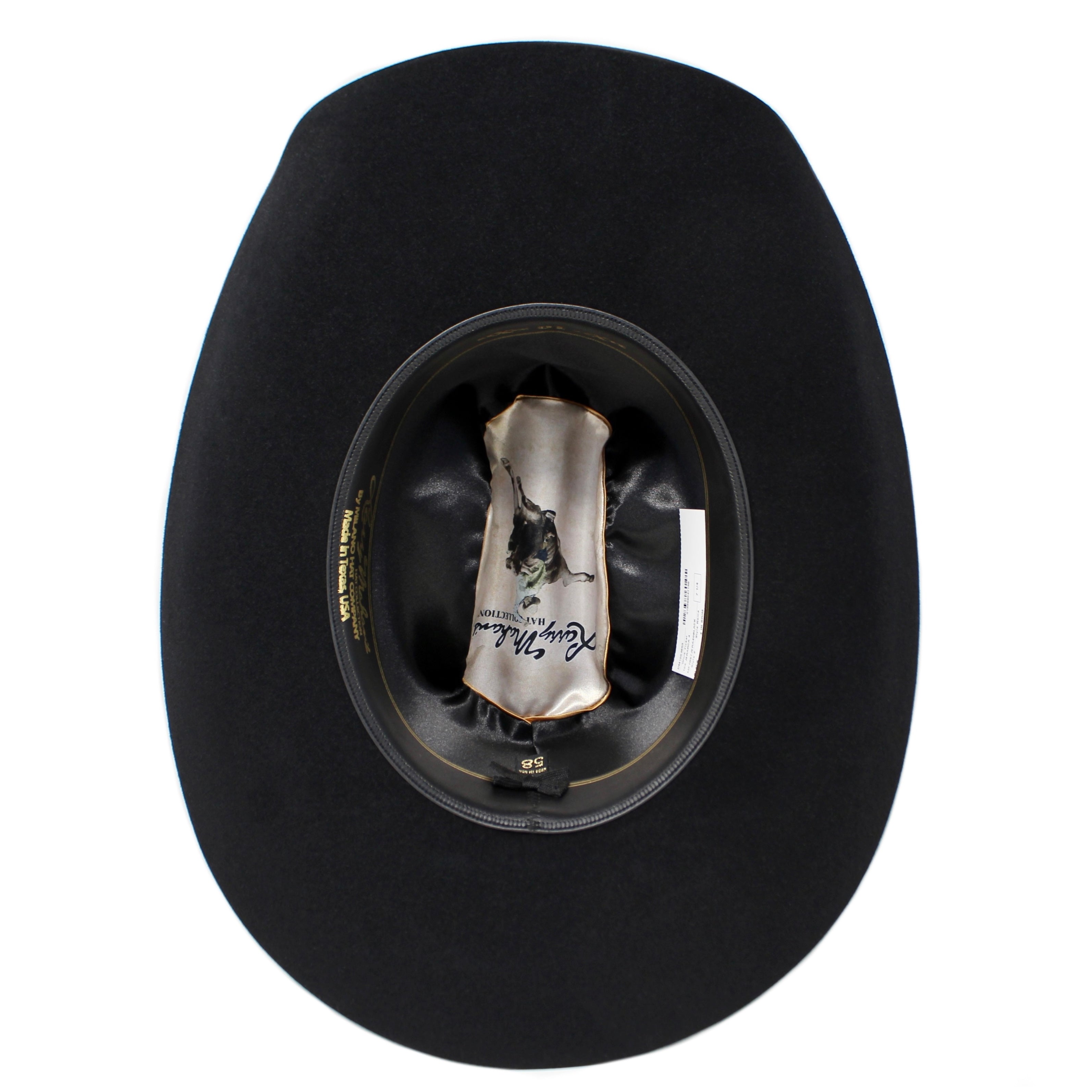 Featuring a cattleman crown, self-felt hatband with an elegant three-piece silver buckle set, and leather sweatband for lasting comfort, this piece blends rugged Western spirit with elevated sophistication. Its satin lining showcases the iconic Larry Mahan rodeo artwork, a symbol of craftsmanship and heritage that’s instantly recognizable.