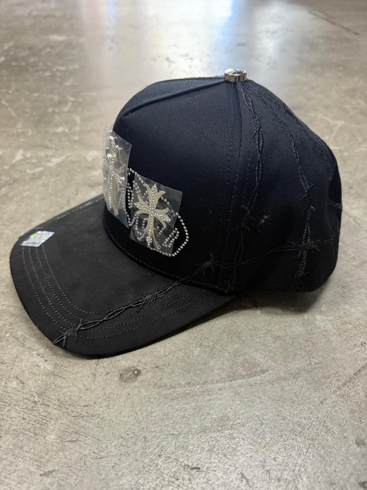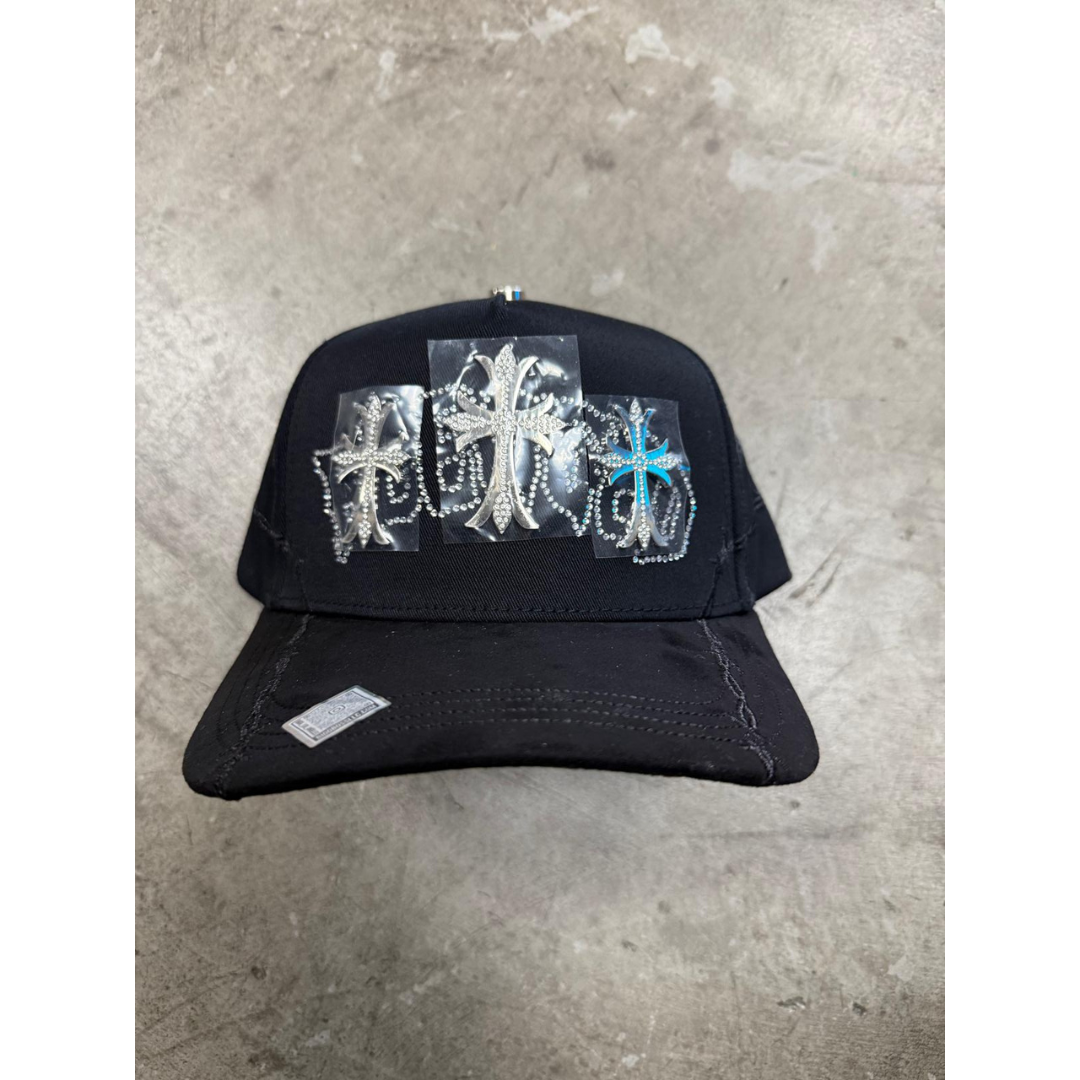 - Triple Cross Silver Embellishment with Rhinestone Detailing