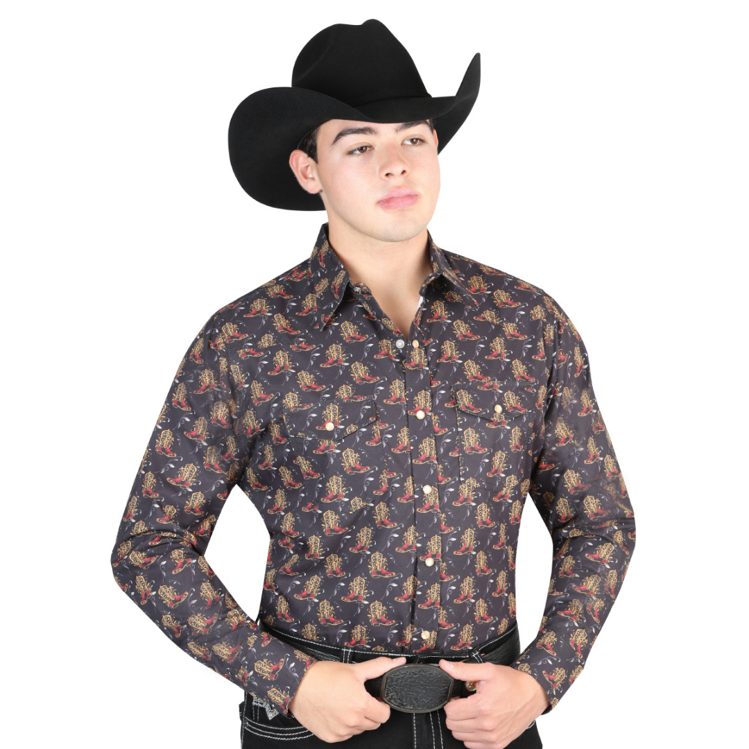 Bring bold Western style to your wardrobe with the El General Men’s Western Button Down Shirt. Featuring a striking Black with cowboy boots print, this shirt blends traditional Southwestern patterns with a modern cowboy fit. Made from soft, breathable fabric, it’s perfect for all-day comfort whether you’re out on the ranch, at the rodeo, or heading to a night out. The sharp collar, button-front closure, and tailored fit make it a versatile staple for any Western outfit.