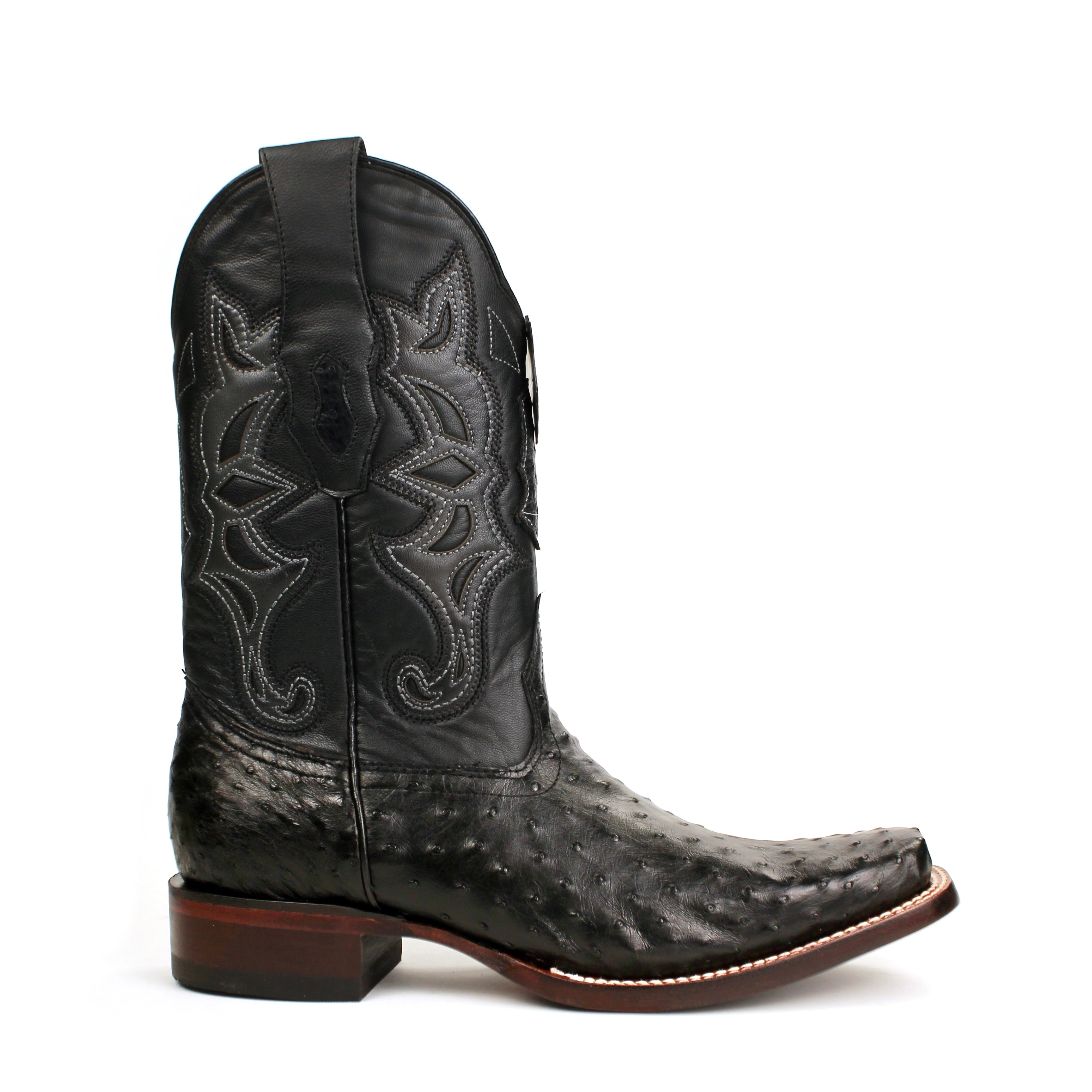 Experience premium Western craftsmanship with these Los Altos men’s black full quill ostrich boots. Handcrafted with genuine full quill ostrich leather, these boots deliver unmatched softness, durability, and signature exotic texture. The classic black finish pairs with a square toe, detailed shaft embroidery, and traditional leather outsole for a bold yet refined cowboy style. Built for rodeos, charreadas, special occasions, and everyday Western wear, these boots combine comfort, luxury, and rugged ranch authenticity. Step into the timeless quality and prestige Los Altos is known for.