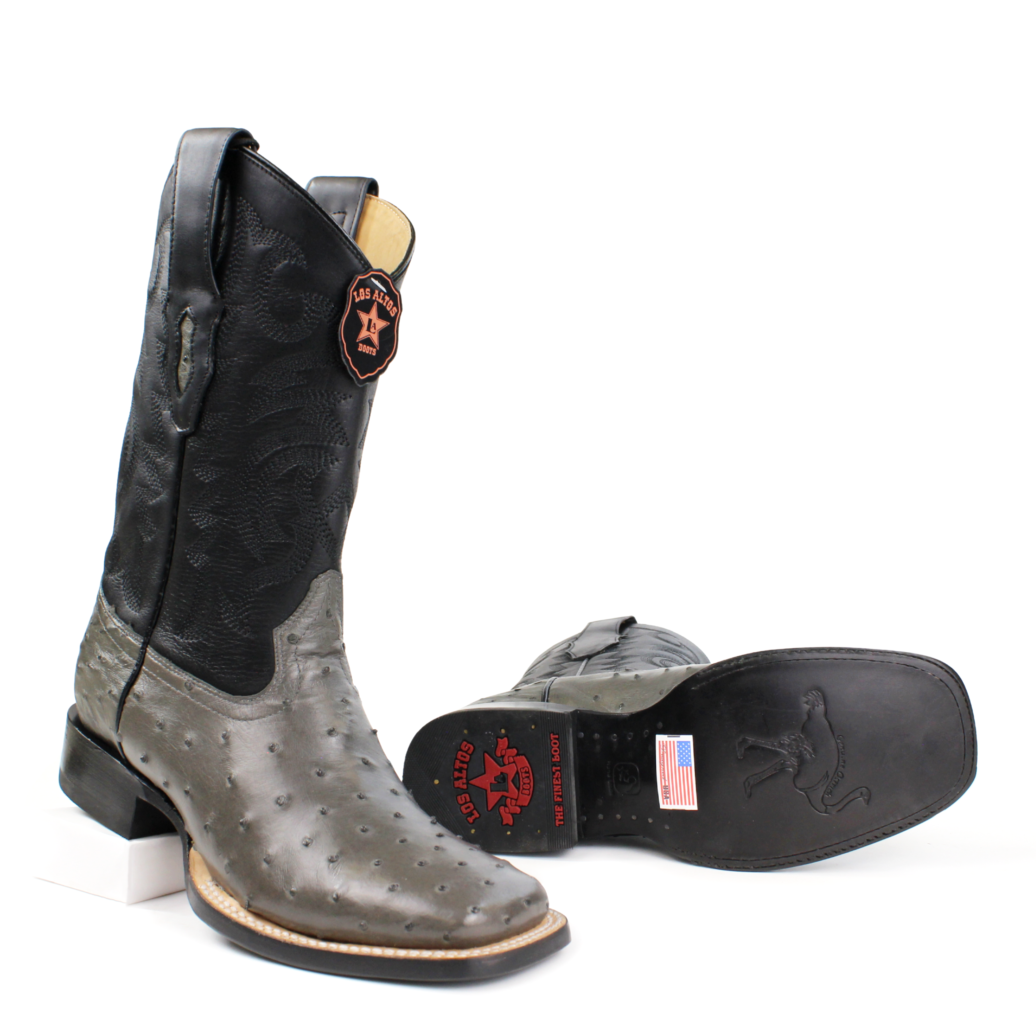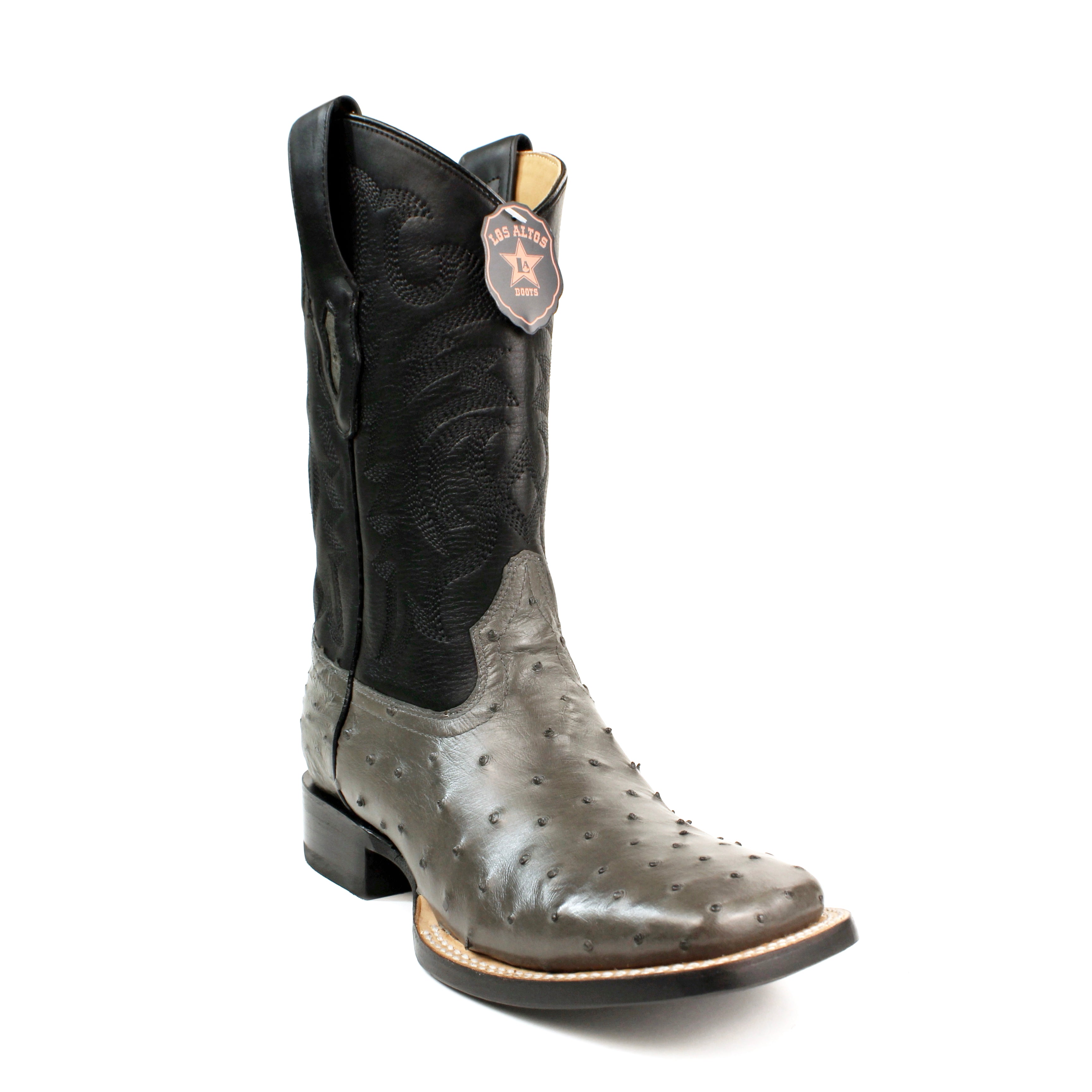 Step up your Western style with the Los Altos Men’s Full Quill Ostrich Wide Square Toe Boots. Handcrafted from genuine full quill ostrich leather, these boots blend superior craftsmanship with luxury and durability. The rich Gray finish highlights the natural texture of the ostrich leather, while the detailed stitching on the leather shaft adds a classic cowboy touch. Built with a Goodyear welt construction for long-lasting wear, these boots deliver exceptional comfort, support, and timeless style for the modern cowboy.