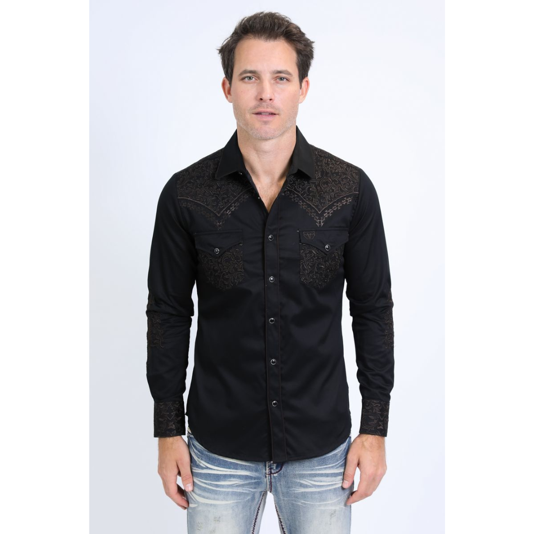 This embroidery western shirt and buttons on the collar, pockets and sleeves is made from 100% cotton. It can be worn as a standalone shirt or over shirt. Look good with everything, all year long.