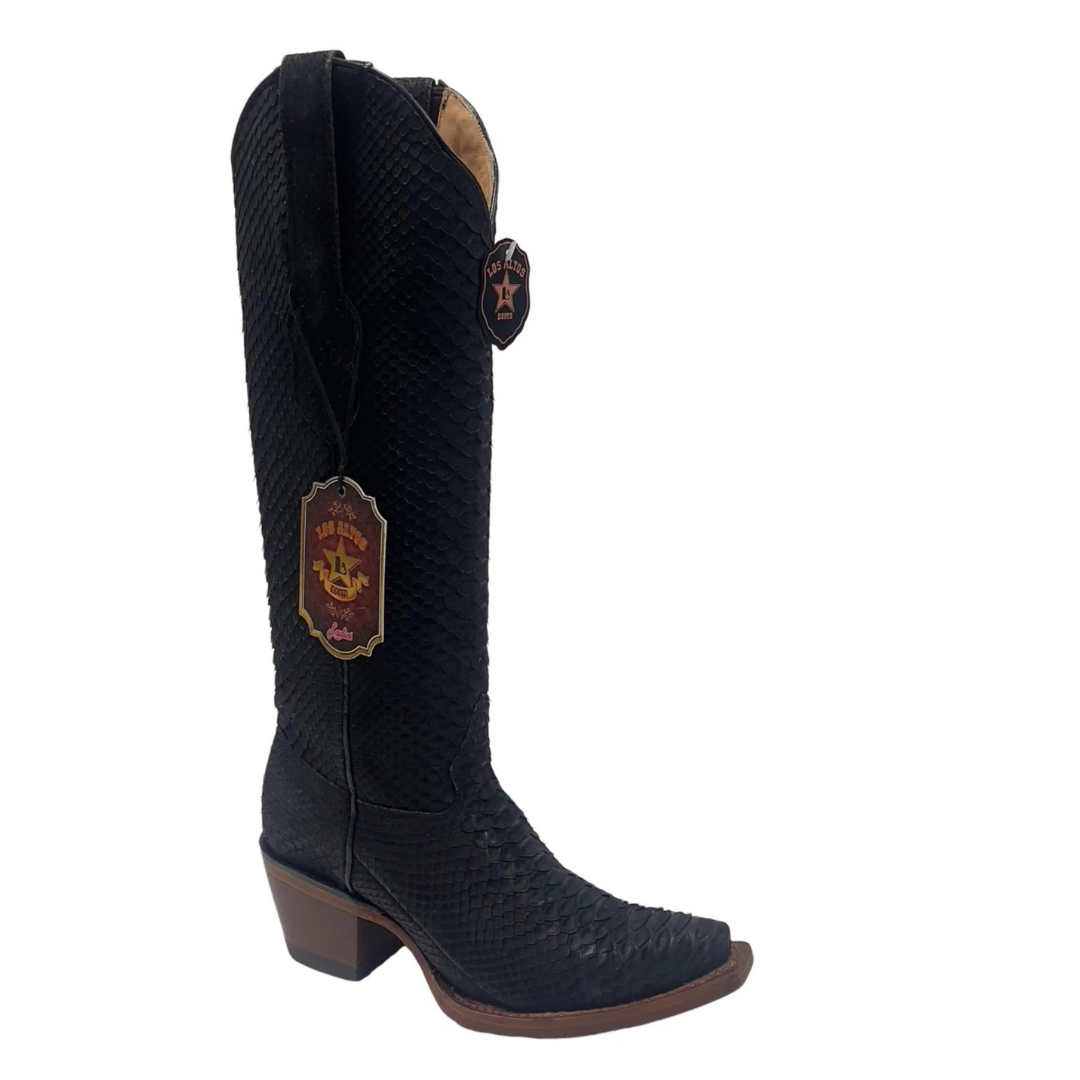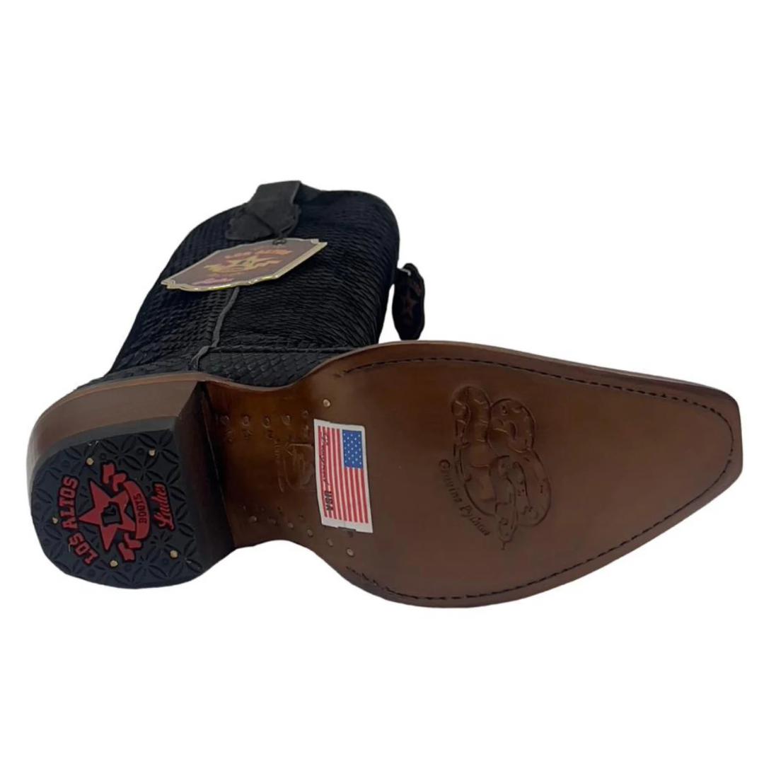 Turn heads the second you step in. These Los Altos Women’s Nobuck Black Python Boots deliver a bold western statement with an elevated, luxe finish. Crafted from genuine python leather in a stunning matte black tone, this pair blends timeless cowboy tradition with high-end texture and fashion-forward edge.