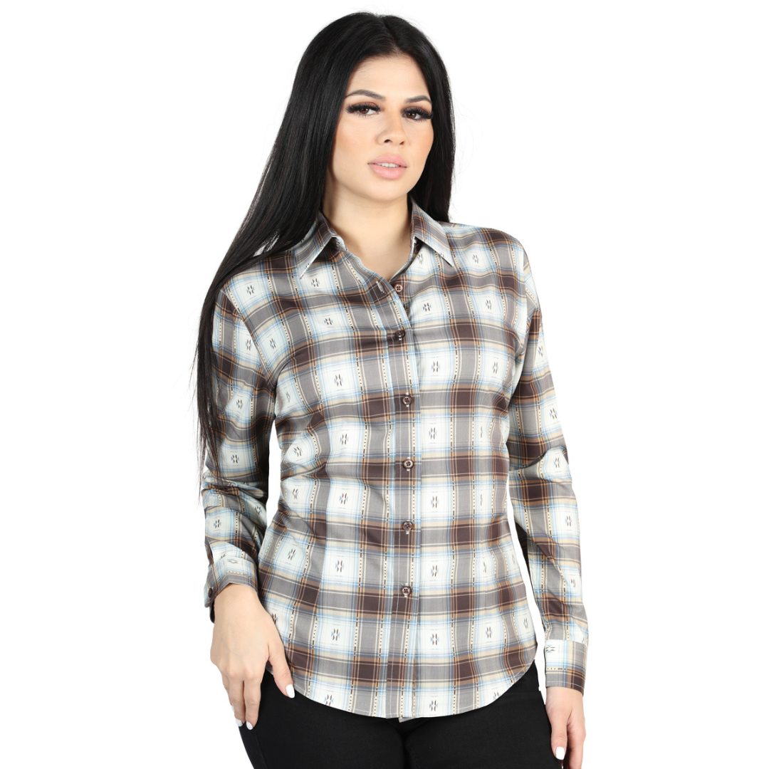 Bring classic Western charm to your wardrobe with this El General Women’s Plaid Button Down Shirt. Designed with a flattering feminine fit, this shirt features a rich brown and light blue plaid pattern that pairs perfectly with jeans, boots, or everyday casual wear. Made from soft, breathable fabric, it delivers all-day comfort whether you’re at the ranch, rodeo, work, or out with friends. The traditional button-down front and long sleeves create a timeless look that’s stylish, versatile, and authentically Western.