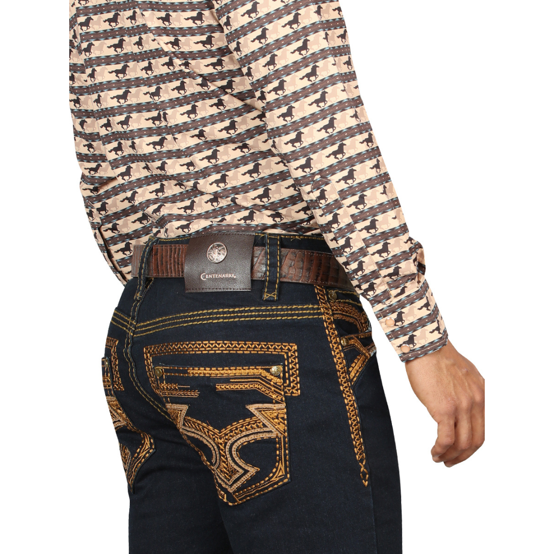 Elevate your Western wardrobe with the Centenario Men’s Boot Cut Dark Blue Denim Jeans. These jeans deliver a sleek, modern cowboy look with a clean dark wash and western stitch detailing. Crafted for comfort and style, they feature a fit that complements your favorite boots and shirts while offering all-day flexibility. Whether you’re at a rodeo, out on the town, or heading to work, Centenario jeans are built for men who value confidence, durability, and refined Western fashion.