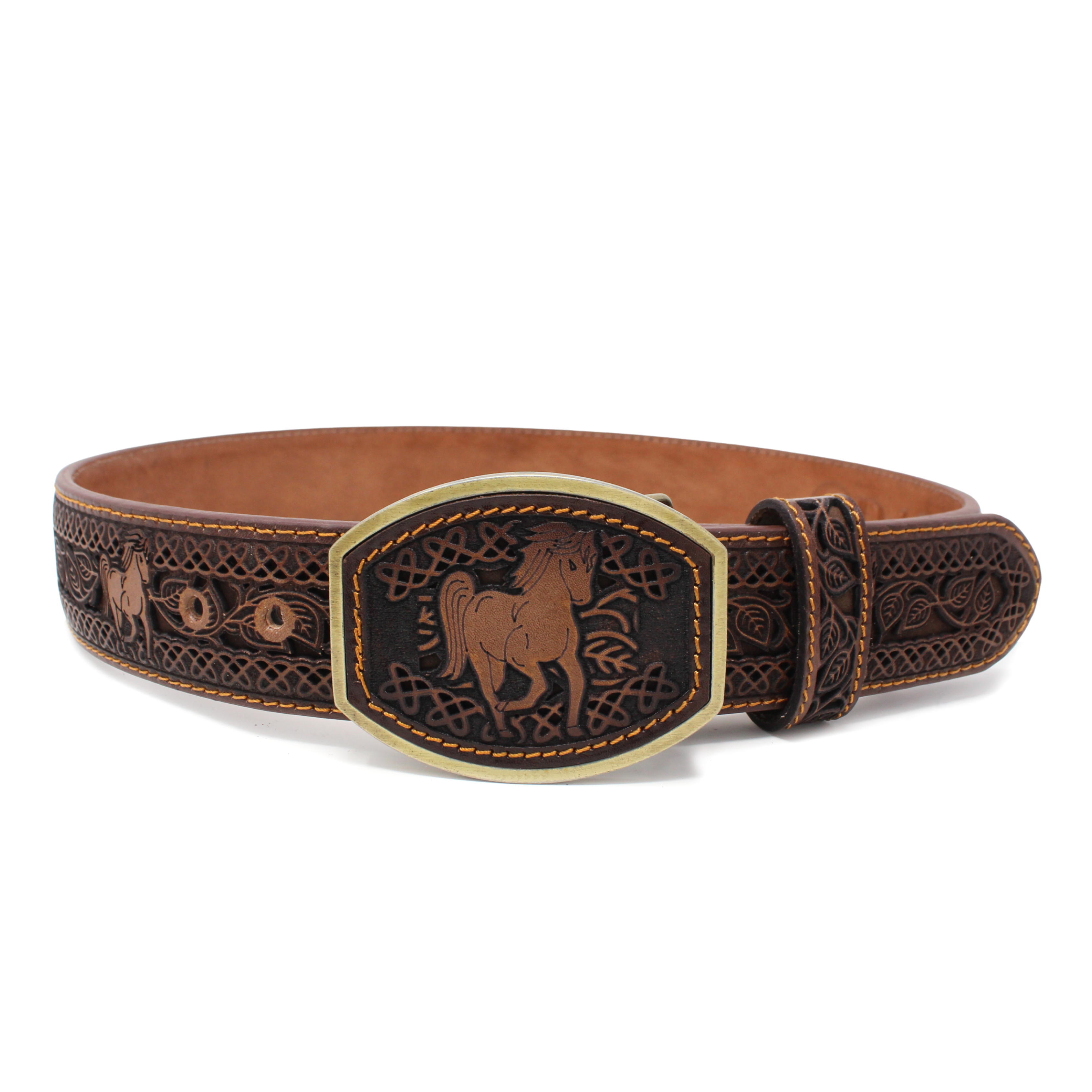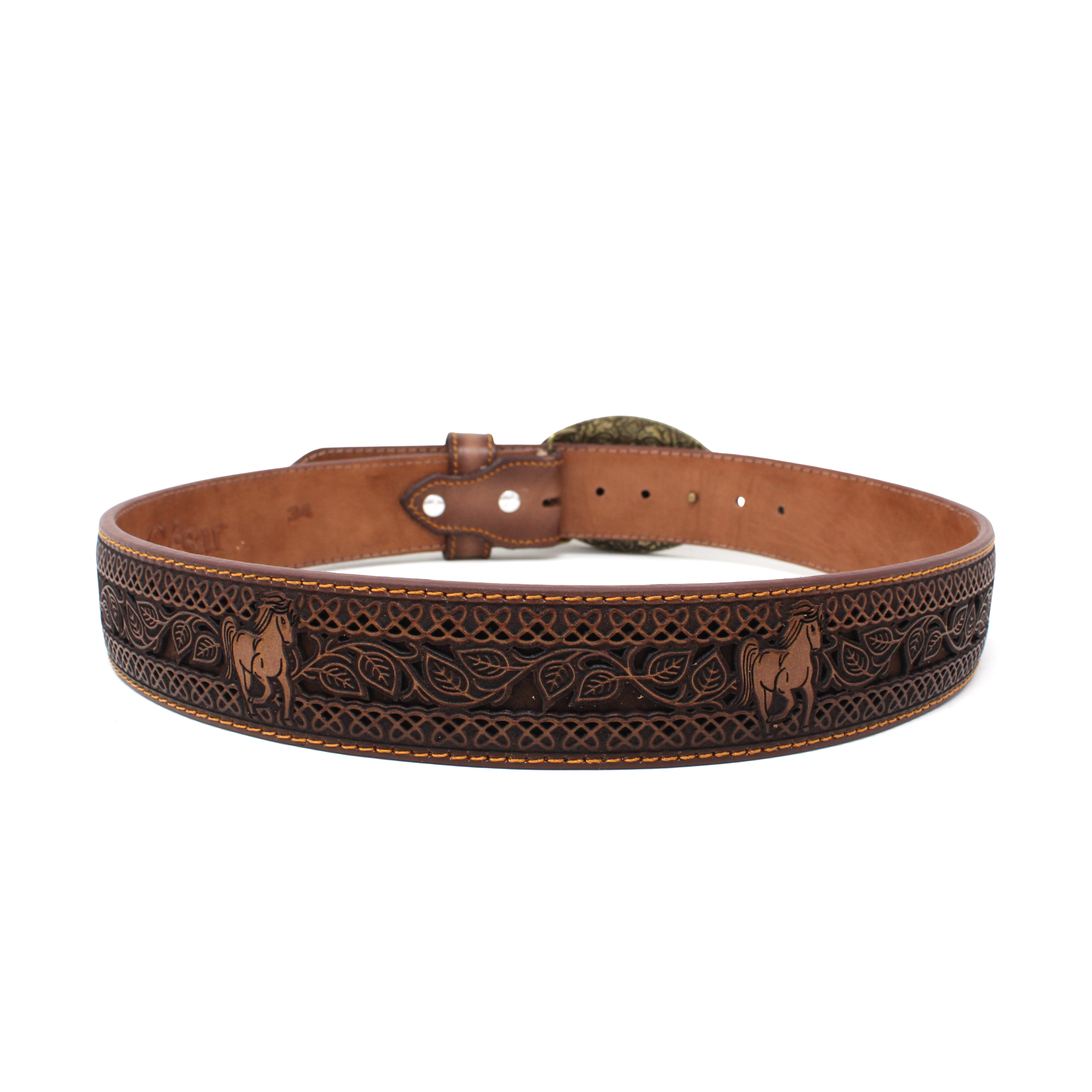 Potrillo Laser Cut Leather Belt- Brown